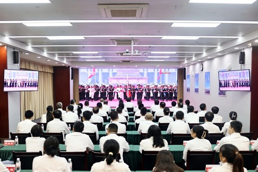 海南能源公司组织全体职工观看九三阅兵直播,激发爱国热情,凝聚奋进力量。