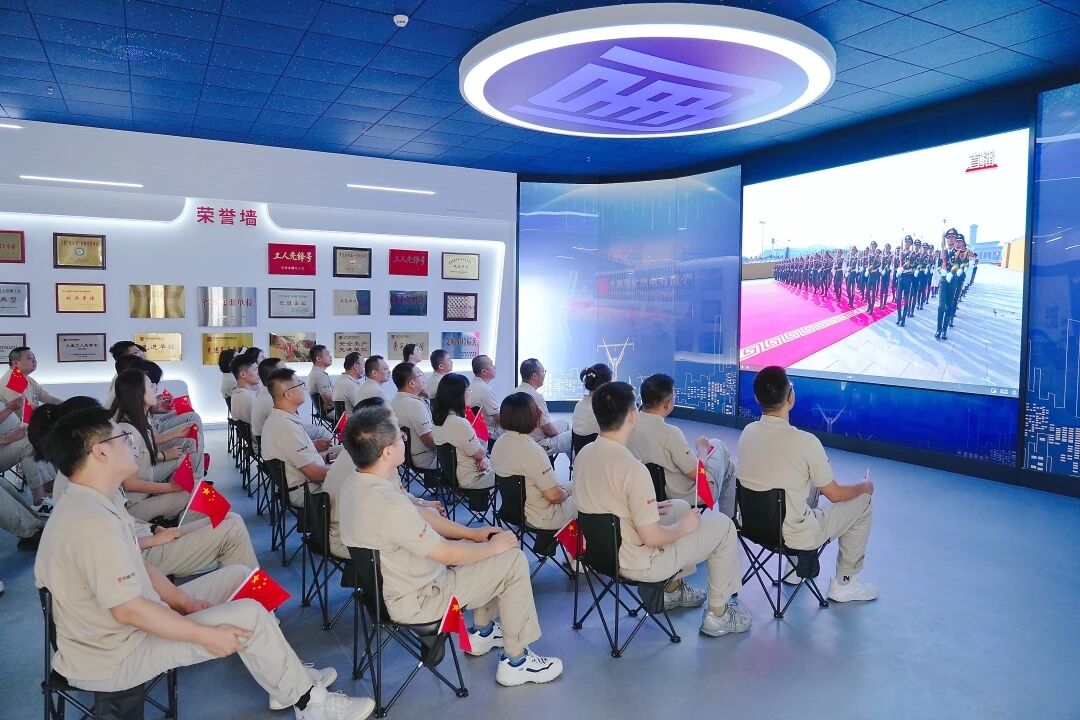 桂冠电力组织干部职工集中收看九三阅兵直播,共同感受国家的强大与民族的自豪。